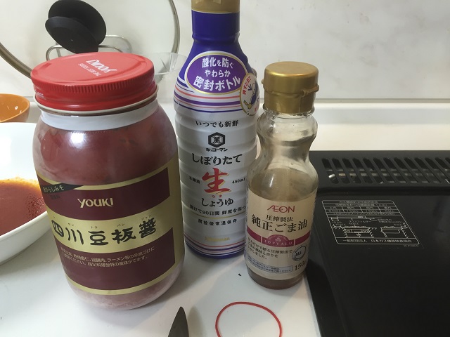 今回は「しょうゆ」「酒」「みりん」「にんにく」「豆板醤」で