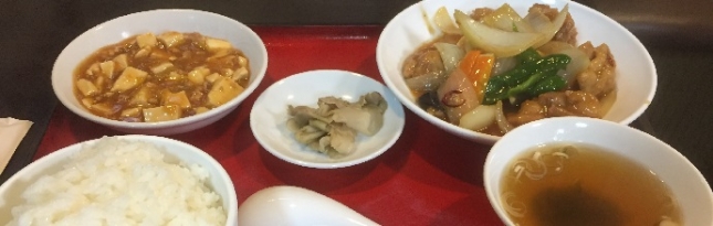 こちら鶏肉のピリ辛煮と麻婆豆腐のランチですレストラン