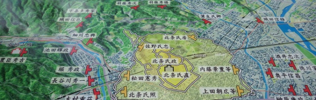 早川から石垣山一夜城歴史公園までに小田原合戦に参加した武将たちの看板が八か所 建ってます。