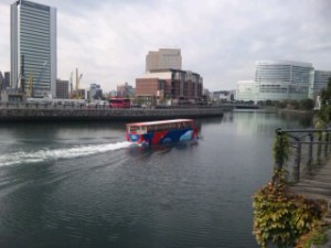 汽車道を通り、水陸両用バスを横目に見ながらマリン&ウォークを目指します。