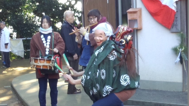 獅子舞が、並んでいる人達の厄を払ってくれました。その後は笛に合わせて