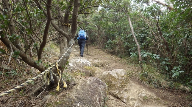下山ルートは急なのでロープが張られて有ります。