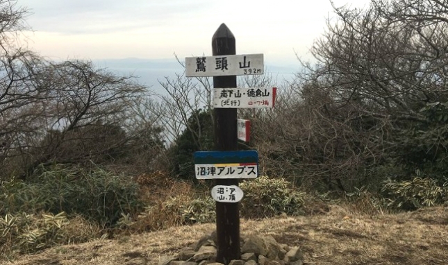 沼津アルプス最高峰の 鷲頭山 標高392mです。