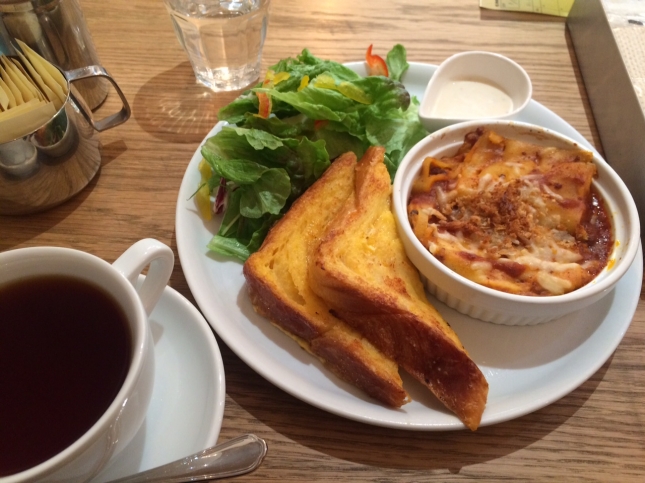 注文は看板メニューのフレンチトーストとラザニアのプレートです
