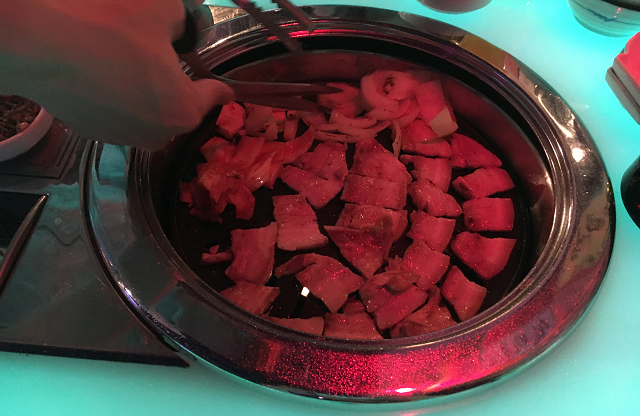 何のお肉かは忘れましたが、店員さんが絶妙な焼き加減で焼いてくれるので