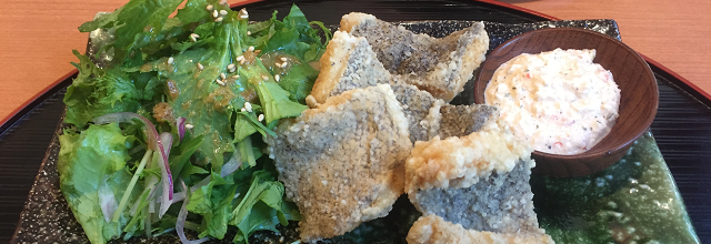 今日の魚料理は白身魚の揚げ物とタルタルソースのようです
