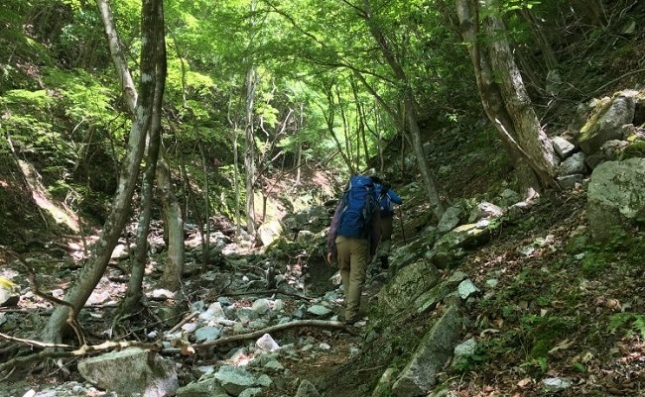 また、沢に近づいてきました 。川のせせらぎに木々の葉擦れの音 心地よい音です。