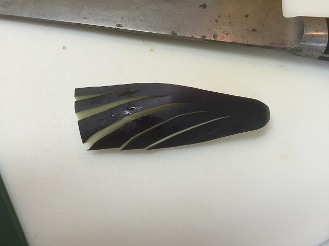 なすには火の入が良くなる様に、切り目を入れます
