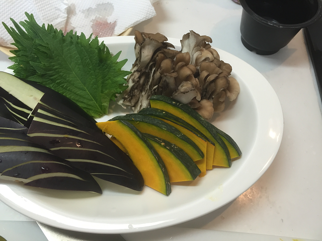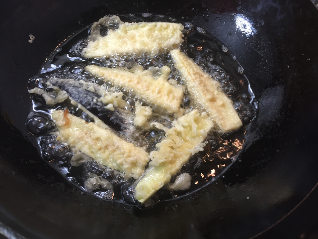 今回は初夏に旬のいわしやナス、大葉の天ぷらです