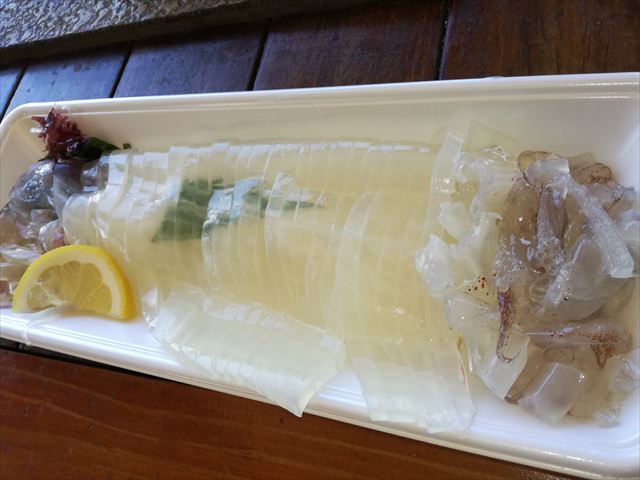 吸盤がまだ舌にくっつく新鮮度で、切り身も透き通っていておいしいお刺身でした!