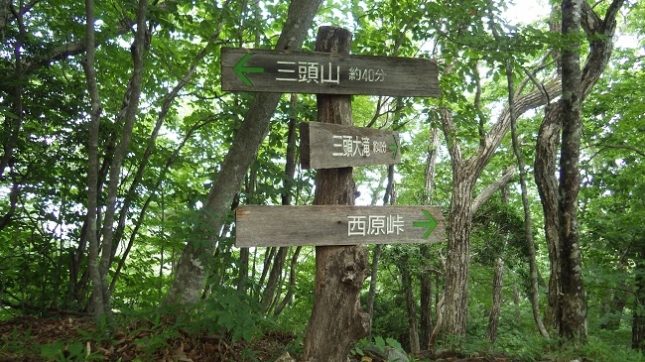 由来は、西峰・中央峰・東峰の3つの頂上があるので三頭山と言いいます。