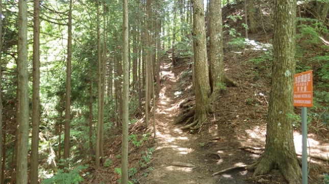 西原峠への分岐点、三頭大滝・三頭山(西峰)間のほぼ中間点です。