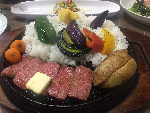 ライスや肉、野菜が盛られてきます
