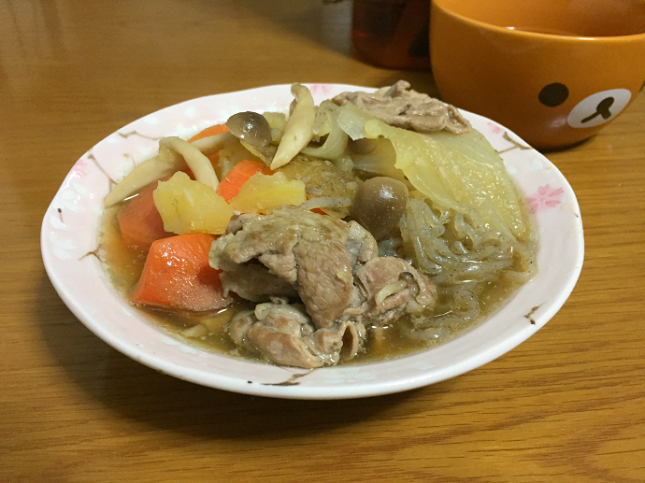 手前は、前日のすき焼きで使った割り下です