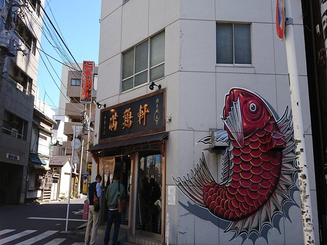 お店の壁に描かれた鯛が特徴的ですが、『満鶏軒』のすぐ近くにある