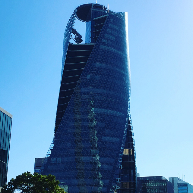 奇抜な形が印象的なモード学園スパイラルタワーという高層ビルです。