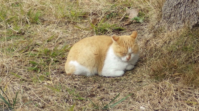 共に 日向ぼっこ 。近づいても、 お構いなし 。