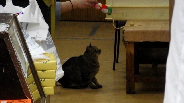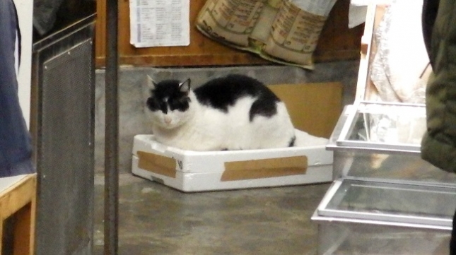 ひもの製造直売店 萬八 の 看板ねこ 。