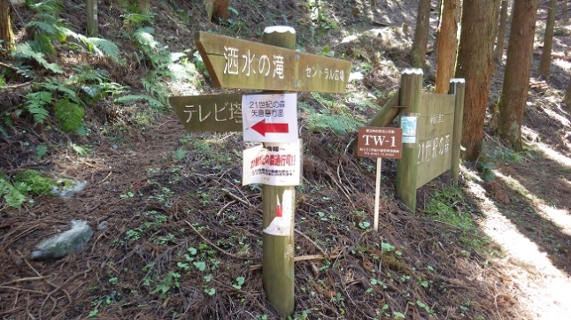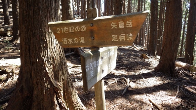 洒水の滝 から 少し戻ると 21世紀の森 への分岐が。