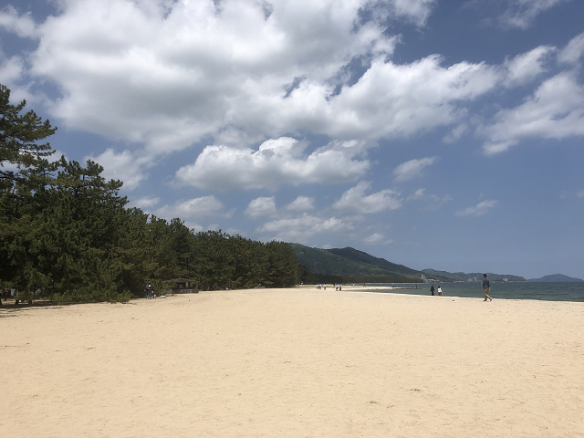 綺麗な白い砂浜と松の並木道です。