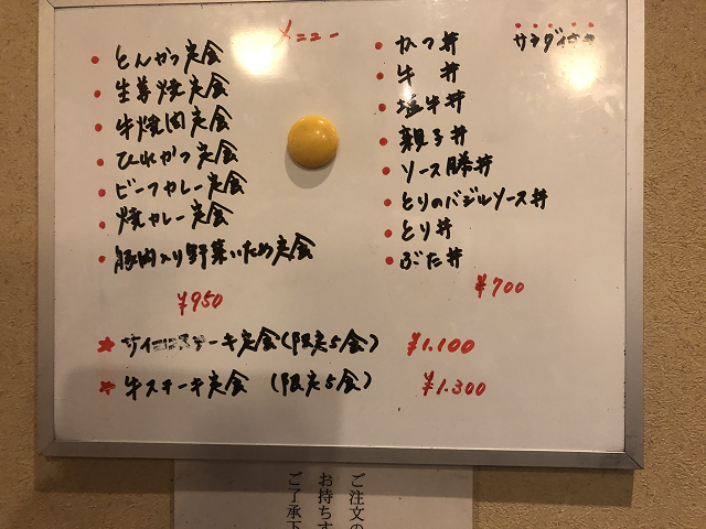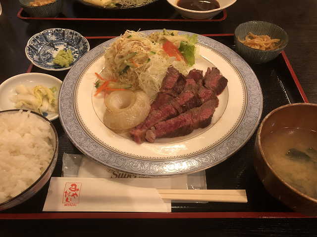 今回は奮発して牛ステーキ定食とヒレカツ定食を頼みました。