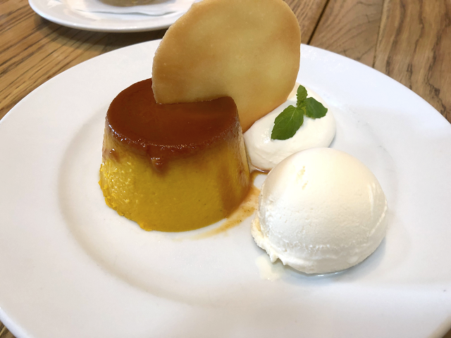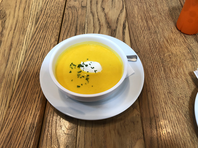 暑い日でしたので、まずはカレー風味の冷製かぼちゃスープを頼みました。