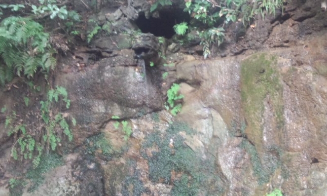 階段を上って行くと途中に滝が有りました。鎌倉時代に発見されたそうです。
