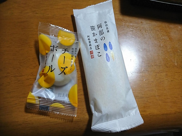 おまけ。お土産に買った仙台名産の笹かまとチーズボールです。