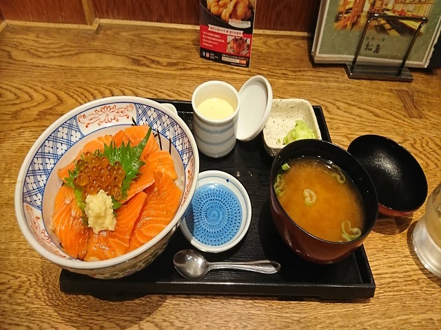 続いては宮城産サーモンをふんだんに使用したサーモン丼!