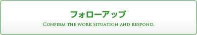 就業後、定期的に職場へお伺いし、お仕事の状況を伺ったりしフォローをいたします。どんな事でもご気軽にご相談下さい。